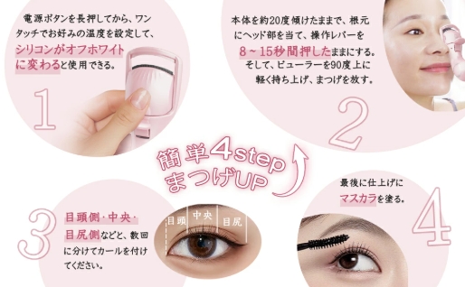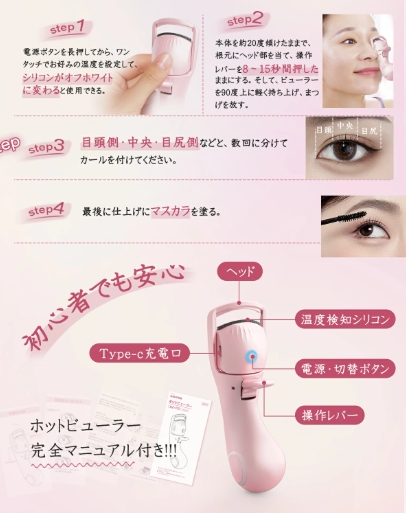 アジア人女性のまぶたのカーブとまつ毛の特性によって開発されたホットビューラー。この小型ホットビューラーで、初心者でも、ご自宅でまつげをより自然でより長持ち美しいカール、忙しい朝でもばっちりまつ毛美人になります。マスカラと併用しでキープ力をさらにカールアップさせることができます。