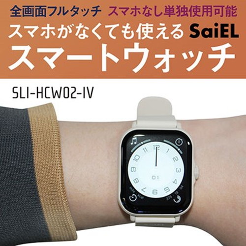 SaiEL スマホがなくても使えるスマートウォッチ 全画面フルタッチ スマホなし単独使用可能 アイボリー SLI-HCW02-IV(代引不可)【送料無料】