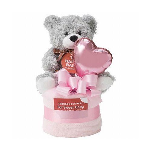 内容物:パンパース紙おむつSサイズ10枚・約34×76cmタオル1枚・綿100%・高さ約20cmクマのぬいぐるみ1体・バルーン付・おむつ、バルーン(日本製)・その他(中国製)