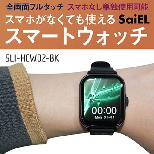 SaiEL スマホがなくても使えるスマートウォッチ 全画面フルタッチ スマホなし単独使用可能 ブラック SLI-HCW02-BK(代引不可)【送料無料】