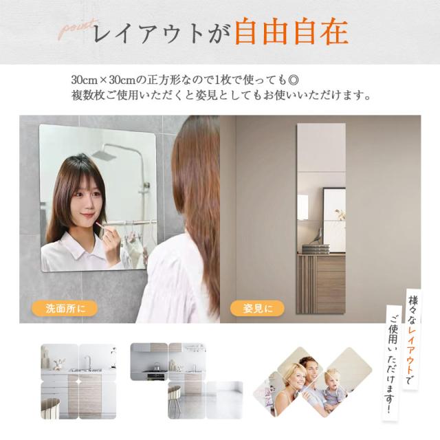 割れない鏡 貼る ミラー 全身鏡 貼れる 姿見鏡 割れない 子ども 子供 ケガ防止 セット 飛散防止 二次災害防止 穴あけ不要 貼付け可能 省スペース 両面シールつき 軽量 鏡 安心 安全 軽い シンプル 壁 直角型 丸角型 直角 丸角
