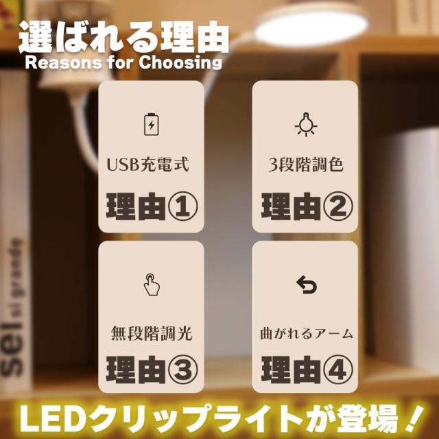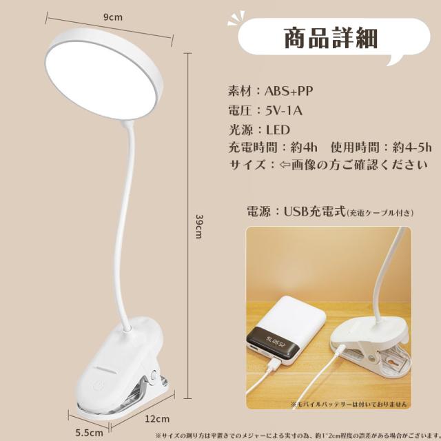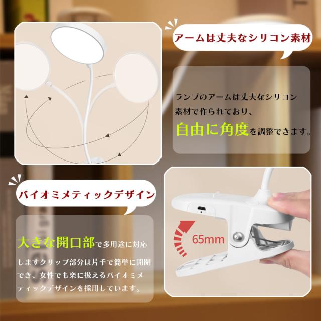デスクライト 3個セット クリップライト 読書灯 学習机 LED 目に優しい 3色モード 勉強 おしゃれ 明るい調整可能 読書 シンプル 調光 クリップ式 置き型 充電式 USB 卓上ライト LEDライト 仕事 寝室 卓上 ベッドライト