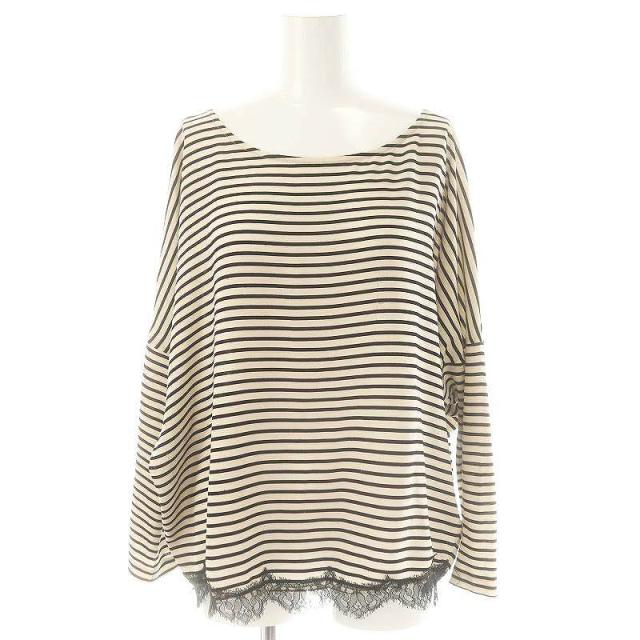 【中古】ダイアグラム グレースコンチネンタル カットソー 長袖 バックリボン ボーダー 36 ライトベージュ 黒