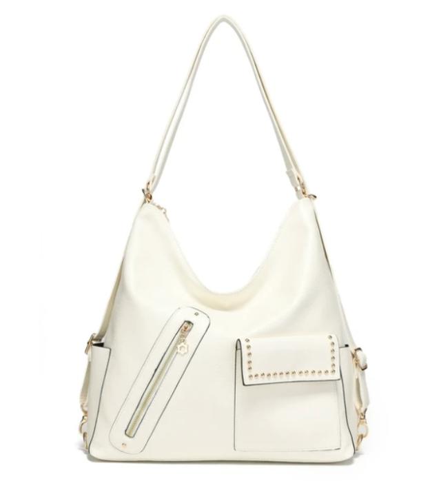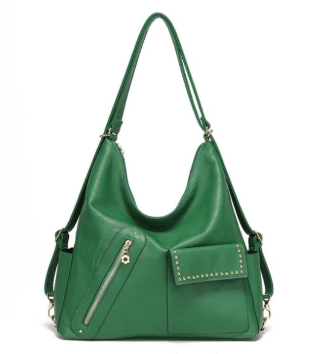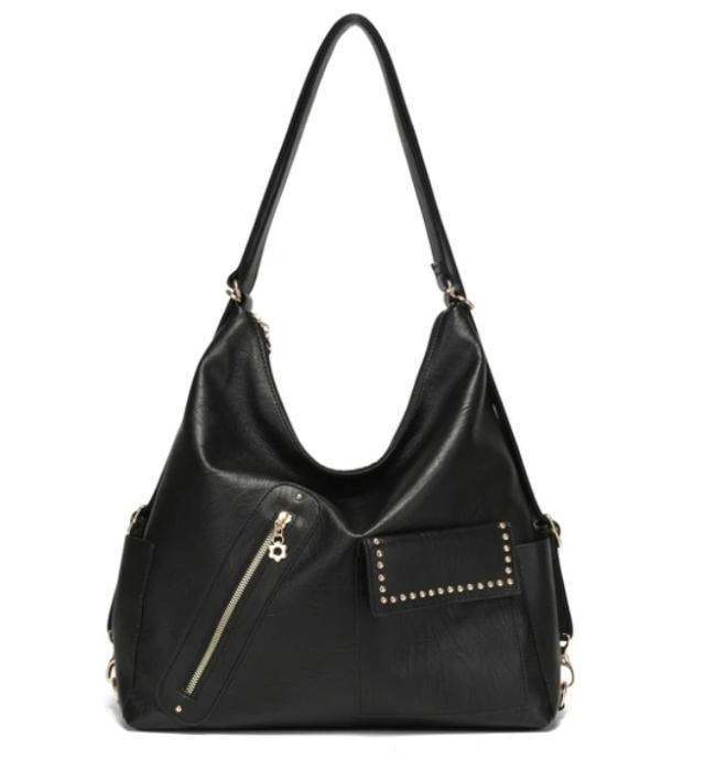 ショルダーバッグ リュック 2way ビッグジッパーポケット ファスナーポケット たっぷりサイズ かぶせ蓋 ファスナー花モチーフ 斜め掛け おしゃれ レディースバッグ 鞄