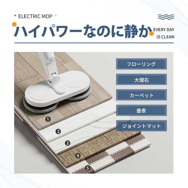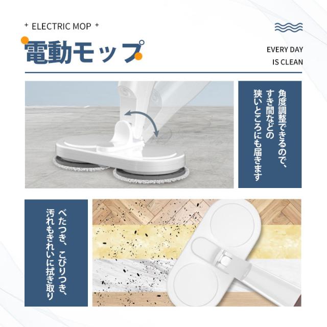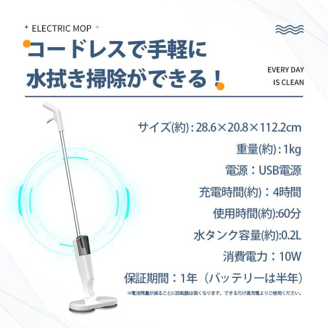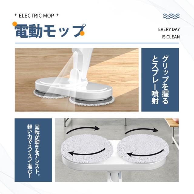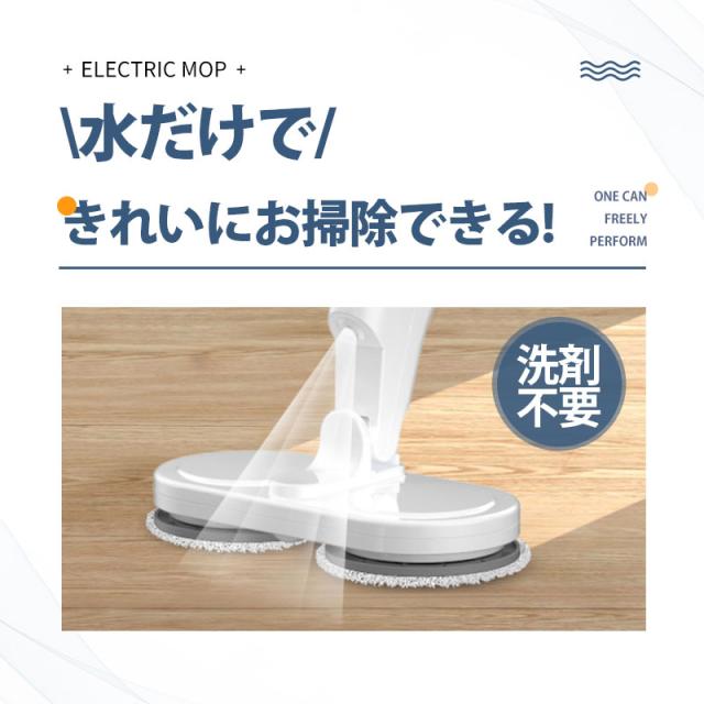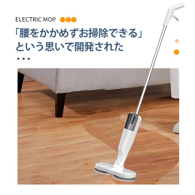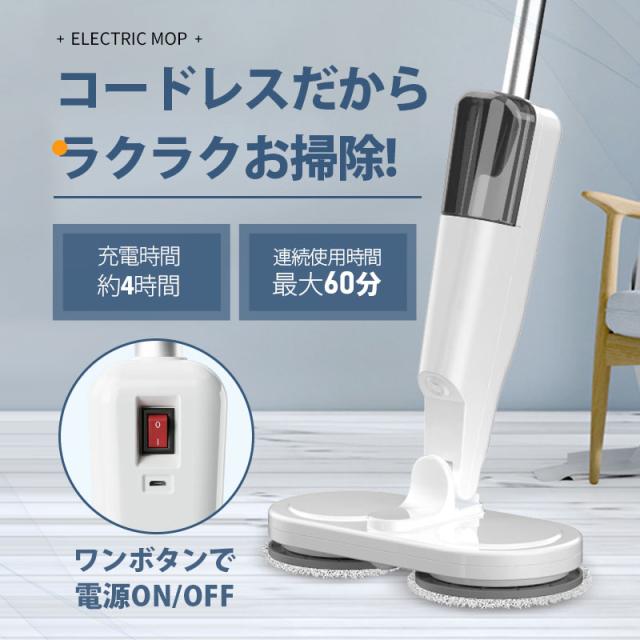 【水曜日まで!10%クーポン配布中】 電動モップ コードレス 回転モップ クリーナー パッド3枚付 水噴射 充電式 水拭き 床掃除 電動モップクリーナー 掃除 軽い 掃