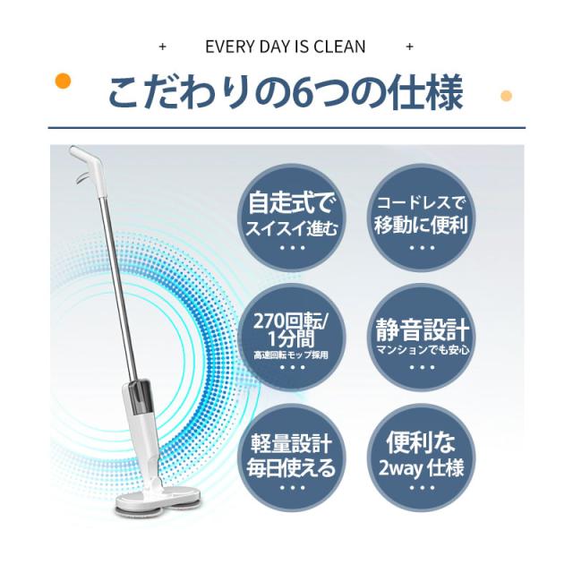 電動モップ 回転モップ 軽量 高速回転 水噴射 水拭き 長さ調整可 充電式 コードレス 長時間稼働 モップクリーナー 床掃除 コードレス 送料無料 1分間200回転の高速回転!回転モップクリーナー 軽くて簡単 回転モップクリーナー 電動モップ 軽量 自走式 水拭き コードレス 床拭き 掃除機 網戸 モップ 高速回転 充電式 1人暮らし ギフト 新生活