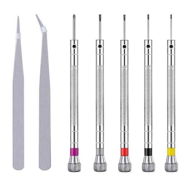 精密ドライバー 時計職人ドライバー 精密 マイナスドライバー 極細ピンセット ピンセット 腕時計用 時計工具セット 時計電池交換 パソコンの修理 腕時計の修理 眼鏡の修理(7本セット)