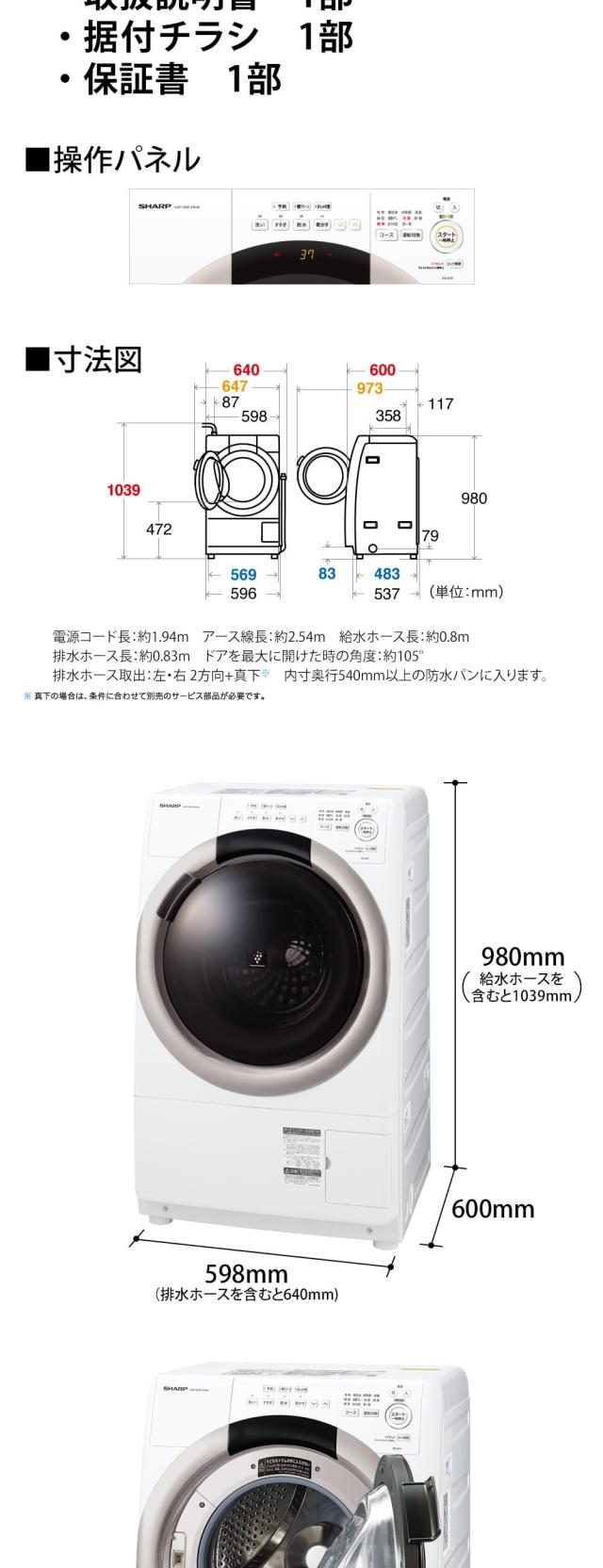 ES-S7K-CR SHARP ベージュ系 [ドラム式洗濯乾燥機 (洗濯機7kg/乾燥機3.5kg) 右開き]