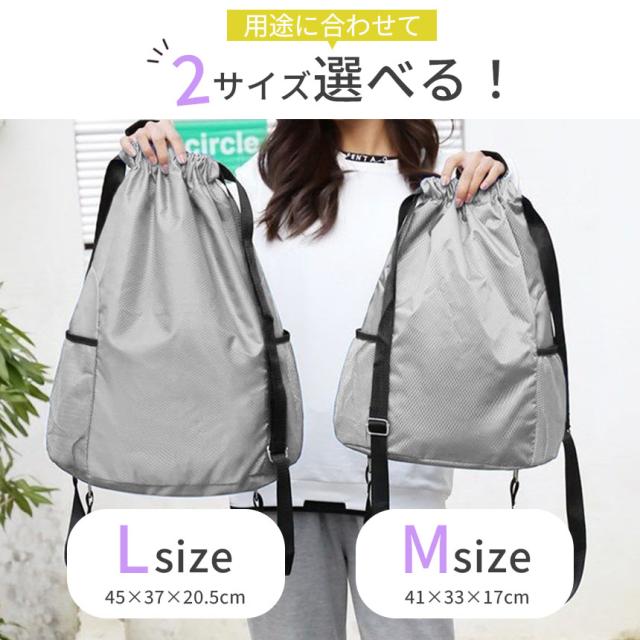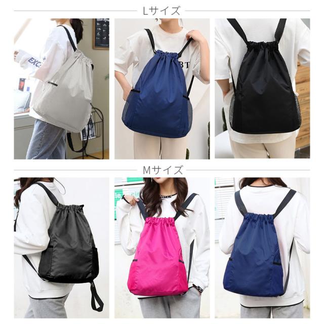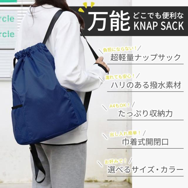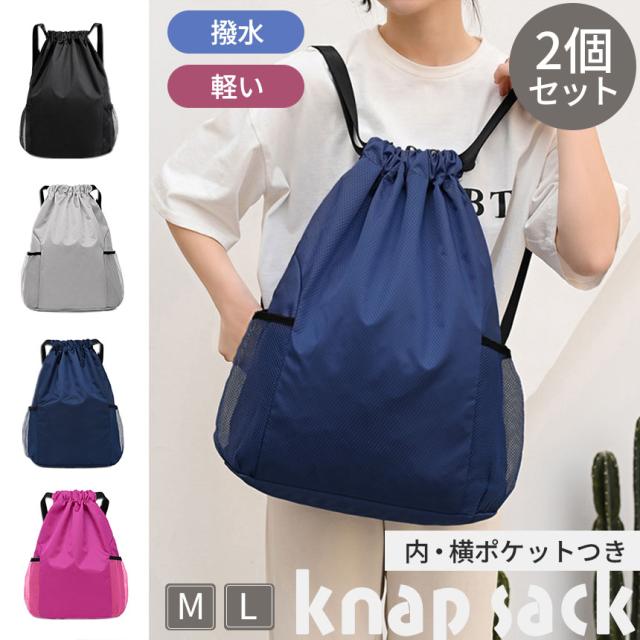 ナップサック 2個セット バッグ リュック 鞄 巾着 ナップザック リュックサック 撥水加工 軽い スポーツ 大人 子ども 大容量 ポケット 部活 プール 体操着 体操着入れ シューズ 靴 ケース おしゃれ かわいい M L 黒 ブラック グレー ネイビー ピンク かばん シューズケース
