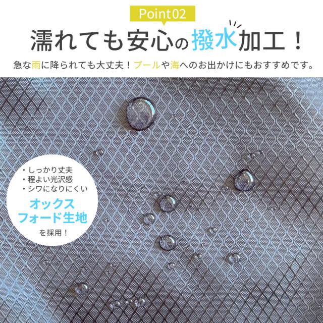 突然の雨に降られても安心して使用でき、プールや海などへのお出かけにもおすすめです。