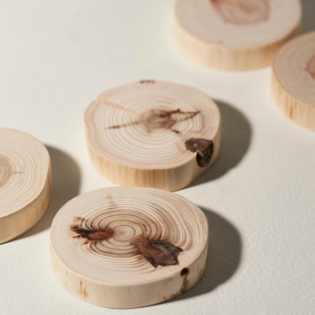 ディフューザーとしては珍しい輪切りの形は、年輪や色合いなどの個性をすみずみまでご覧いただけるだけでなく、年月とともに変化する表情の変化もお楽しみいただけます。