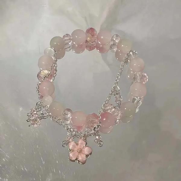 女性のためのビーズのブレスレット,ピンクのクリスタルの花,蝶のペンダント,愛らしいチェーン,ギフトジュエリー