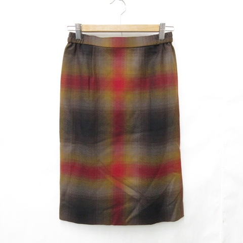 【中古】未使用品 ハーディエイミス タイトスカート ひざ下丈 チェック柄 ウール 茶 黒 赤 ブラウン ブラック 11