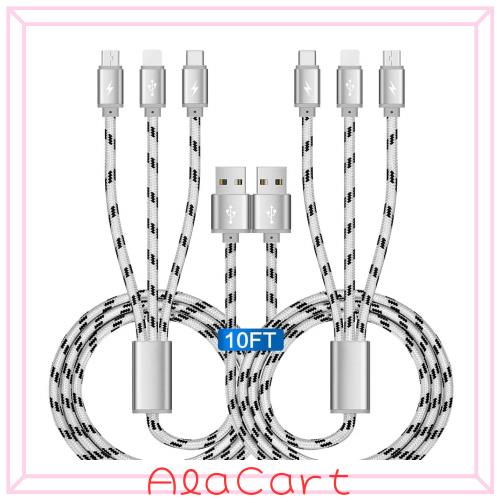 ASICEN 2 * 3イン1 10フィート/3メートルナイロン編みケーブル