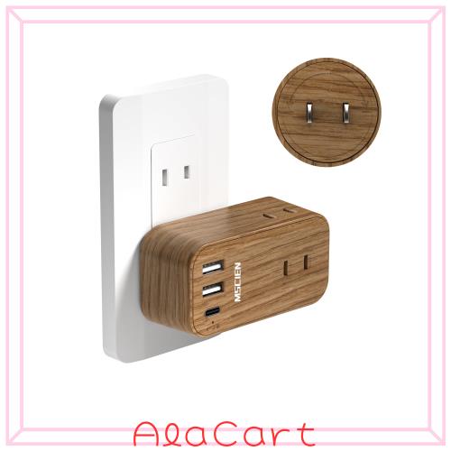 MSCIEN 電源タップ コンセント USB付き タイプC 木目 回転 3個AC差込口 1個USB-Cポート 2個USB-Aポート たこあしコンセント 向き変換 分