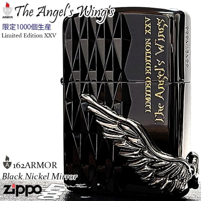ZIPPO ライター アーマー 限定 エンジェルウィング 1000個生産 ブラックニッケル ジッポ シリアルNo入り 2025年シーズン 天使の羽 ダイヤカット