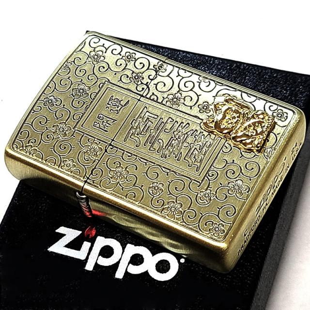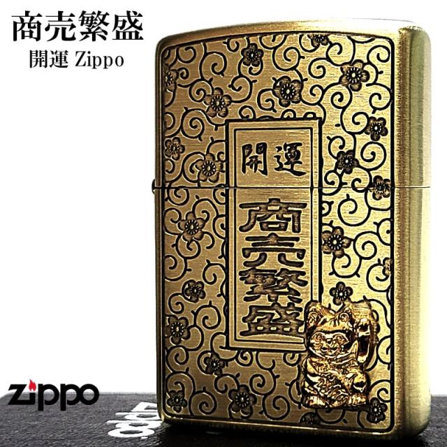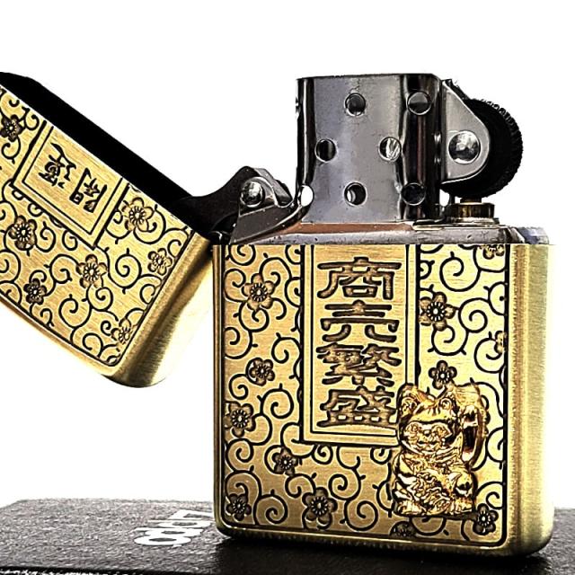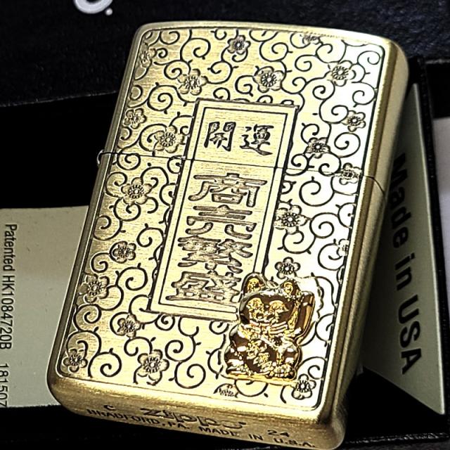 ZIPPO ライター 招き猫 商売繁盛 開運 ジッポ 幸運 ブラスサテン 彫刻 お守り アンティーク ゴールド 和柄 唐草 縁起物 渋い おしゃれ メンズ