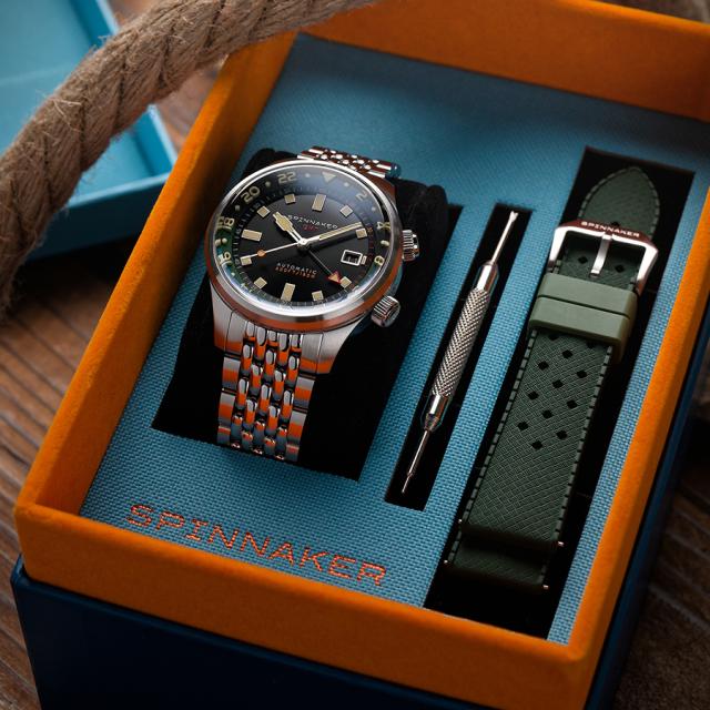 スピニカー ブラッドナー GMT オートマチック SP-5121-44 メンズ 腕時計 メカニカル 自動巻 ブラックダイヤル 替えバンド付き