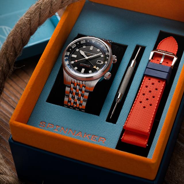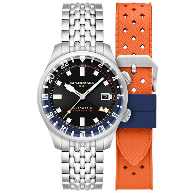 スピニカー ブラッドナー GMT オートマチック SP-5121-66 メンズ 腕時計 メカニカル 自動巻 ブラックダイヤル 替えバンド付き