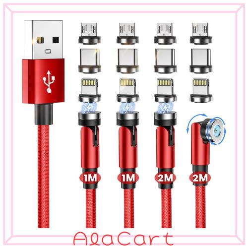 Nonfuf マグネット 充電ケーブル USB iPhone [4本組 1Mx2 2Mx2] 3in1 540°回転 じゅうでんケーブル USB C Type-C Micro USB タイプc 充