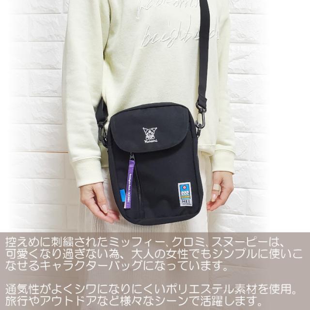 [ポイント] ミッフィー スヌーピー クロミ メイオーシャン コラボ ショルダーバッグ ボディバッグ レディース 肩掛けバッグ 斜めがけ miffy Snoopy ポシェット ポリエステル ブラック サブバッグ シンプル アウトドア 旅行 運動会 遠足 サンリオ