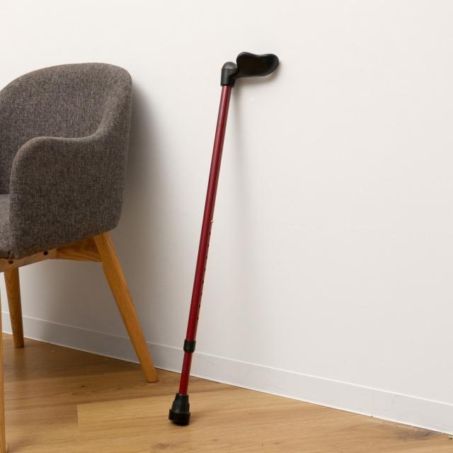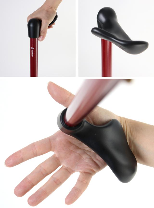 握力が弱い方も安定して突けるリハビリ用杖です。最大の特徴は、オーストリアの医師・フィッシャー博士考案の幅広グリップ。手のひらと母子球(親指の付け根)でしっかりと握れます。