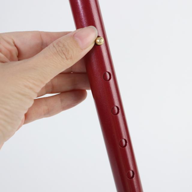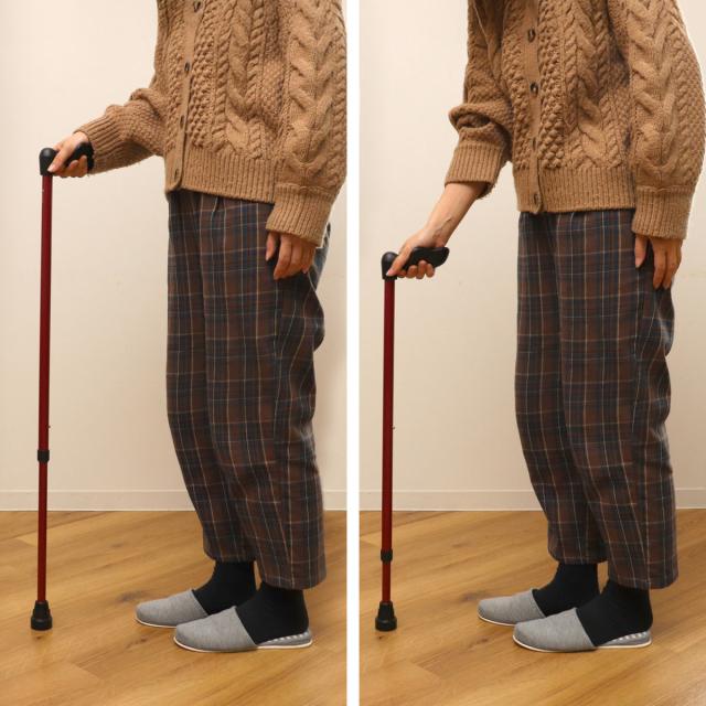 杖の長さは、2.5cm間隔で9段階に調節できます。ボタンを押しながらシャフトをスライドします。