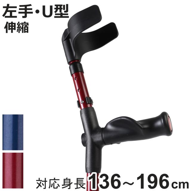 杖 前腕部支持型杖 オールニーズクラッチ U型 左手用 非課税 ( クラッチ杖 つえ ステッキ 左利き 伸縮 松葉杖 オープンカフ 長さ調節 軽量 介護 歩行補助 介護用品 13段階調節 歩行 補助 リハビリ 転倒防止 高齢者 おしゃれ )
