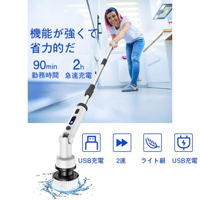 電動ブラシ 掃除用 USB充電式 車掃除 電動 9種類 付替えブラシ お風呂 バス 掃除ブラシ 長さ速度調整 ポリッシャーワイヤレス ハンディ 柄付