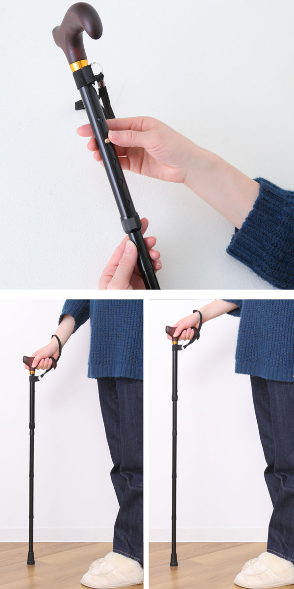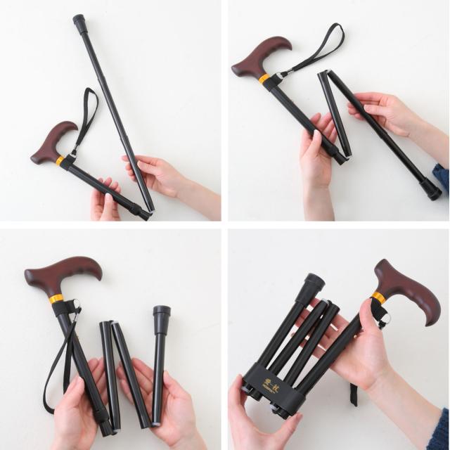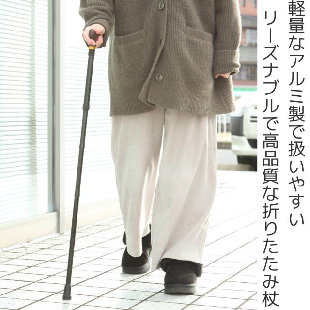 杖 折りたたみタイプ 愛杖 Dシリーズ アルミ ( つえ ツエ 折りたたみ杖 一点杖 伸縮 長さ調節 軽量 介護 歩行補助 高齢者 おしゃれ 介護用品 5段階調節 歩行 補助 リハビリ 衝撃吸収 転倒防止 ストラップ付き )