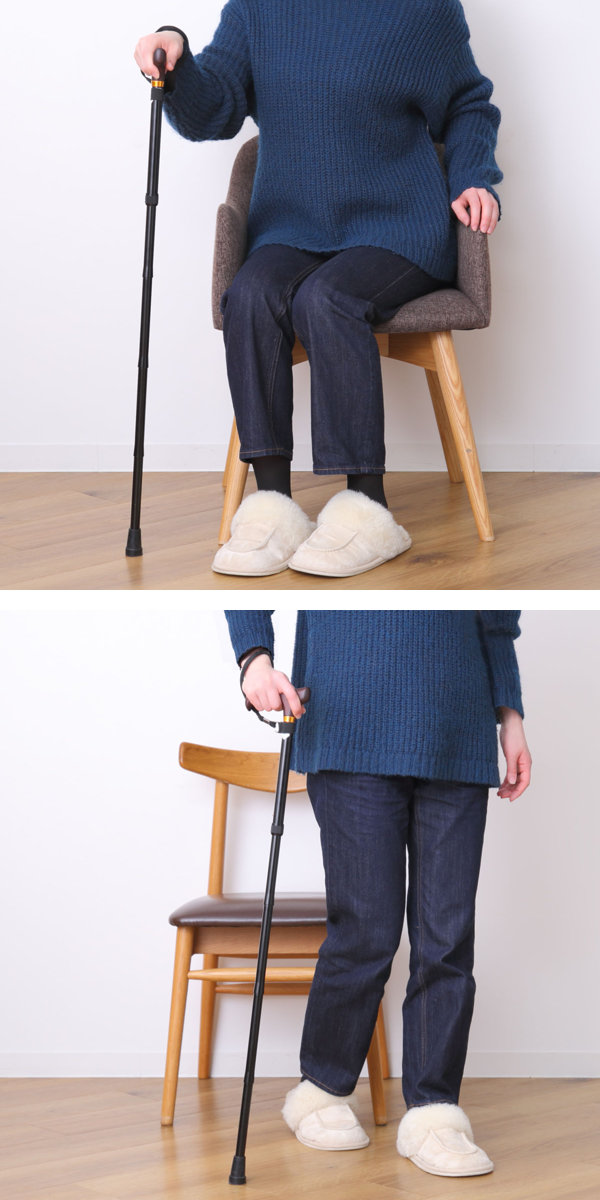 歩行時の使用はもちろん、椅子に座って立ち上がる際にもお使いいただけます。杖をうまく使用することで、椅子からの立ち上がりも楽になります。