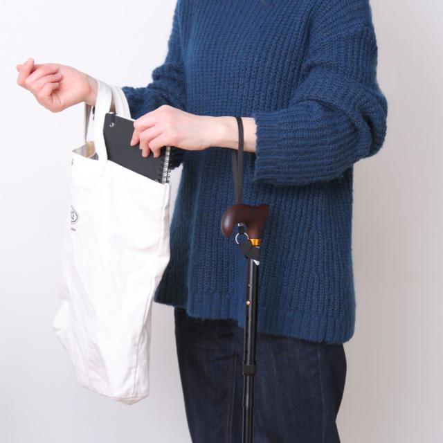 ストラップを手首に通せば、両手が自由になり、置き場所にも困りません。杖を置き忘れたり、倒したりすることも少なくなります。