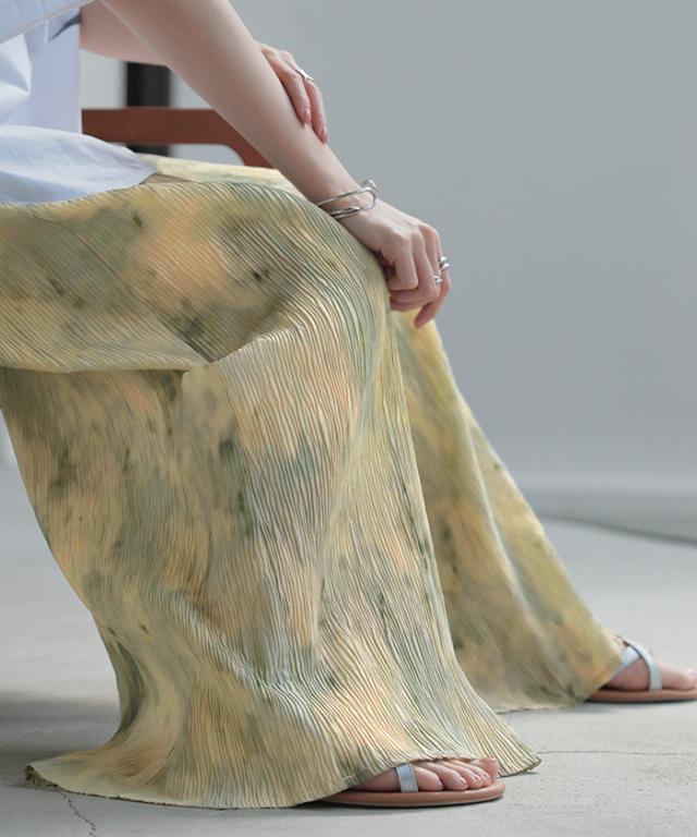 ワイドながらも縦長のプリーツラインですっきり見えを叶えてくれます。