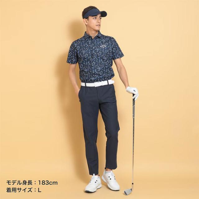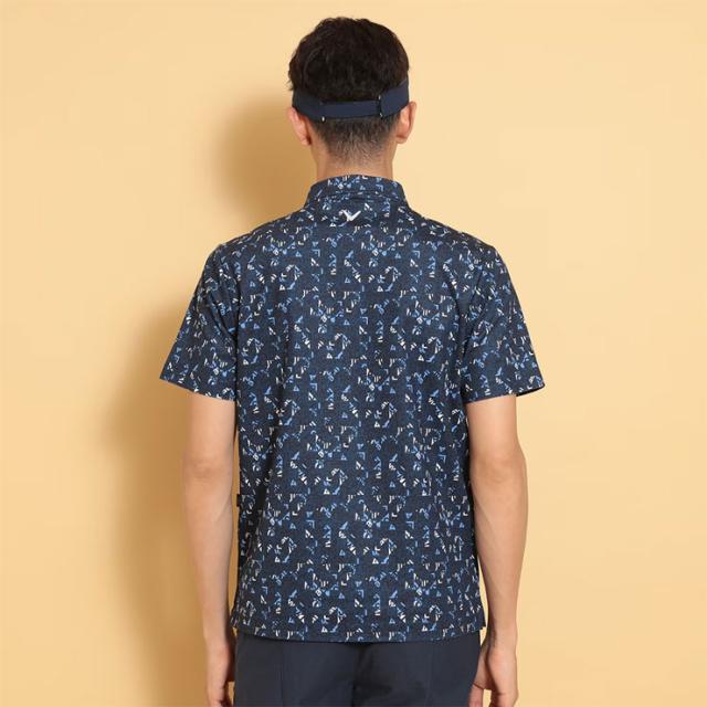 CALLAWAYロゴをタイルのような幾何学柄にアレンジされたプリントシャツです。ちょうど良いアクセントになるように、配色感を抑えたデザインになっています。背裏には「ひんやり感」を得られるクールフェスタを搭載しています。