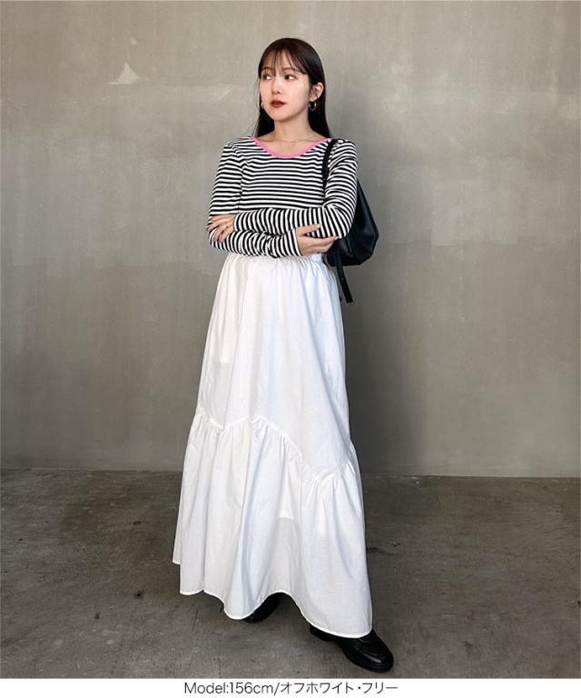 春新作 [ yuiさんコラボ ] バイアス切替えギャザースカート M4191 4月上旬予約 レディース 20代 30代 40代 スカート マキシ丈 ギャザー ゆい フェミニン きれいめ おしゃれ 上品 ママ プライベート 休日 おでかけ かわいい 可愛い 着映え イン