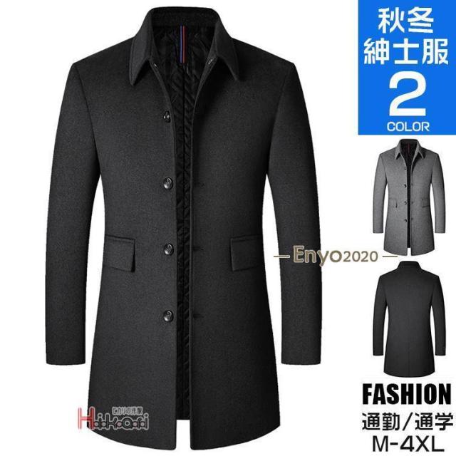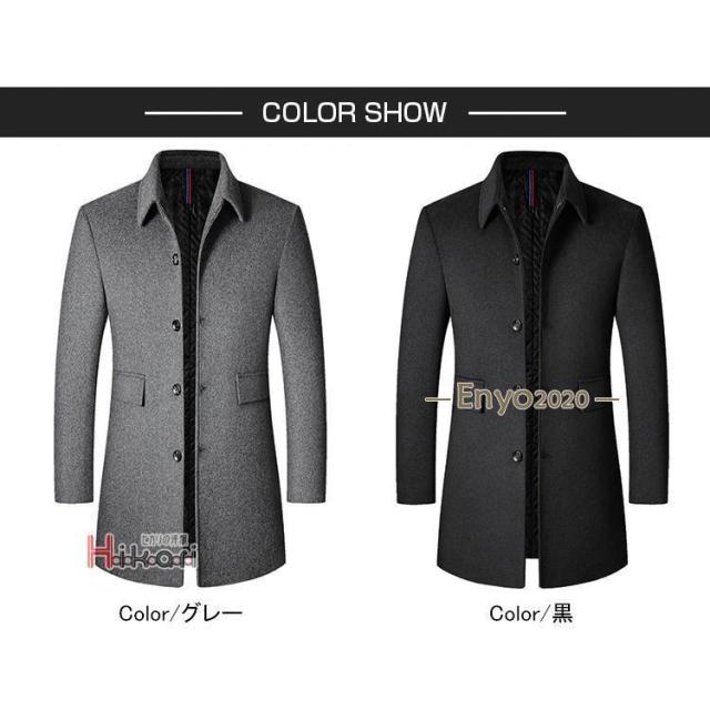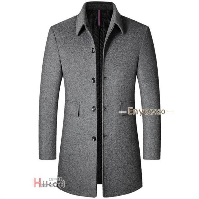 ステンカラーコート メンズ コート アウター 冬 秋 ビジネス ステンカラー ロング ジャケット ウール メルトン スリム