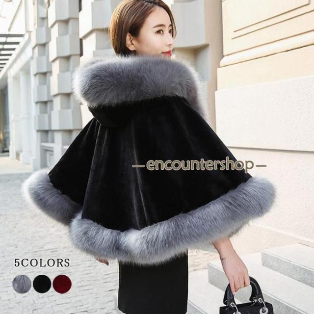 ファーコート マントコート ポンチョ コート マント レディース 毛皮コート 大人 ふわふわ フード付き 可愛い 暖かい 秋冬 トレンド 新作
