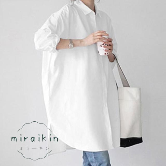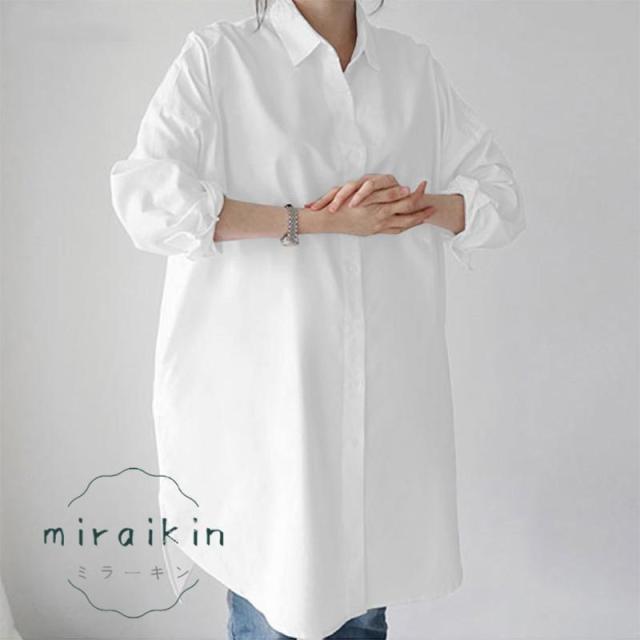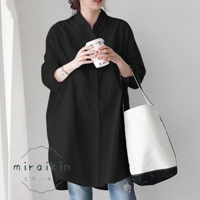 ロングシャツ レディース 春 夏 春夏 黒 白 シャツ ブラウス オーバーサイズ 長袖