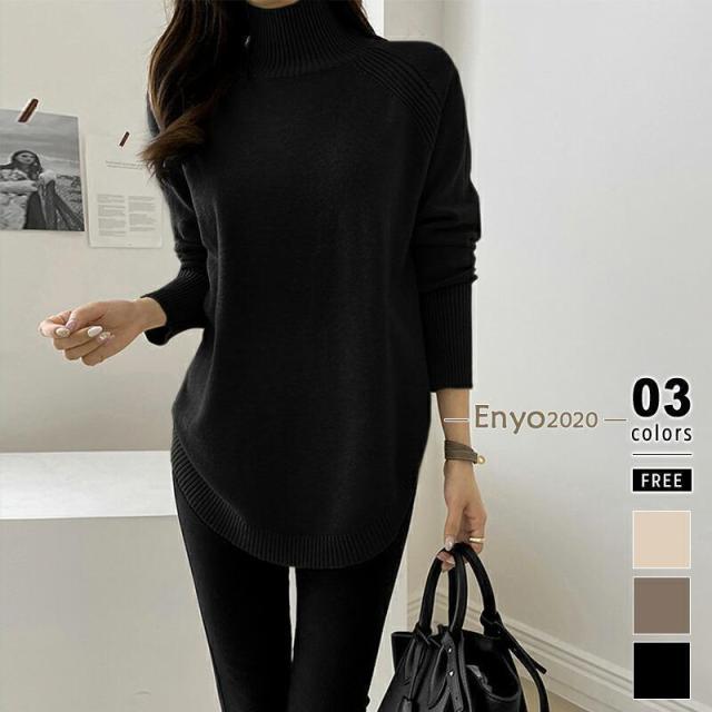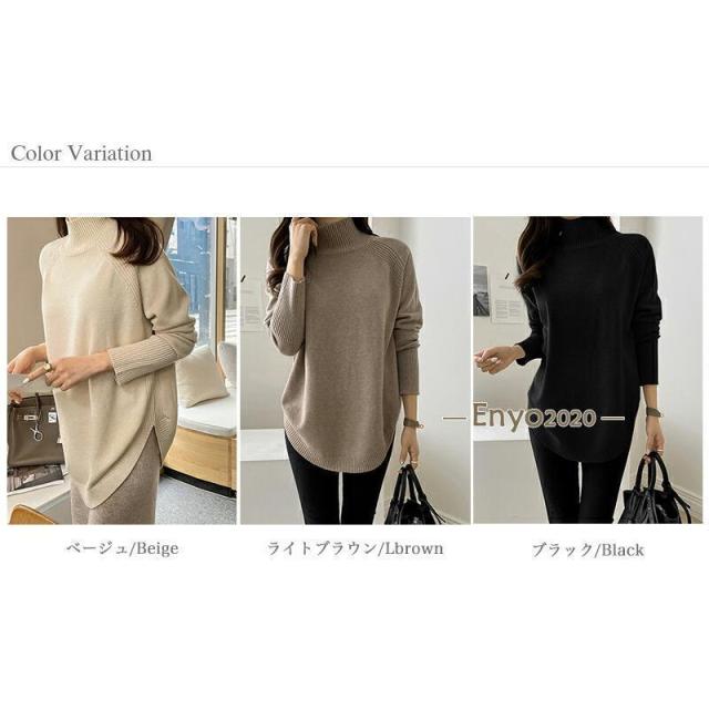 ニット セーター レディース ハイネック 長袖 トップス ラウンドヘム ニットトップス リブ ニットセーター ニットレディース ハイゲージ チュニック丈 ゆったり ゆる 大きめ 体型カバー ロング ロング丈 tops 着回し シンプル 無地 伸縮性 ストレッチ 細見え 袖 長め ロングスリーブ とっくり タートル 重ね着 レイヤード アクリル 柔らかい やわらかい やわらか なめらか ふんわり ふわ ふわふわ ソフトな肌触り もちもち チクチクしない チクチクしにくい ヤク風 ヤク風ニット カシミアタッチ オフィス オフィスカジュアル オフィスカジュアル秋冬 カジュアル 新作 2023aw 2023AW 23年 2023 秋冬新作 秋冬 春 秋 冬 春服 秋服 冬服 韓国 韓国ファッション 10代 20代 30代 40代 50代 60代 cocomomo ココモモ
