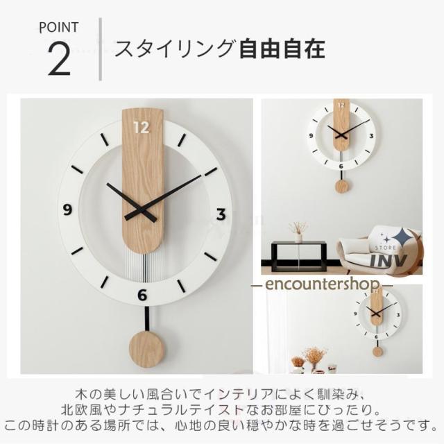 掛け時計 壁掛け時計 おしゃれ 静音 北欧 白 シンプル 40cm 振り子時計 木製 壁時計 北欧 壁掛け 掛時計 かわいい 音がしない オシャレ お洒落 木目調