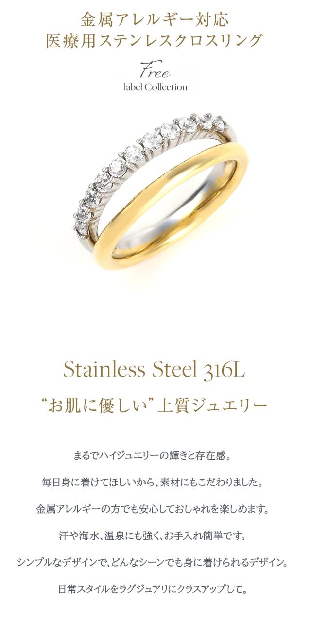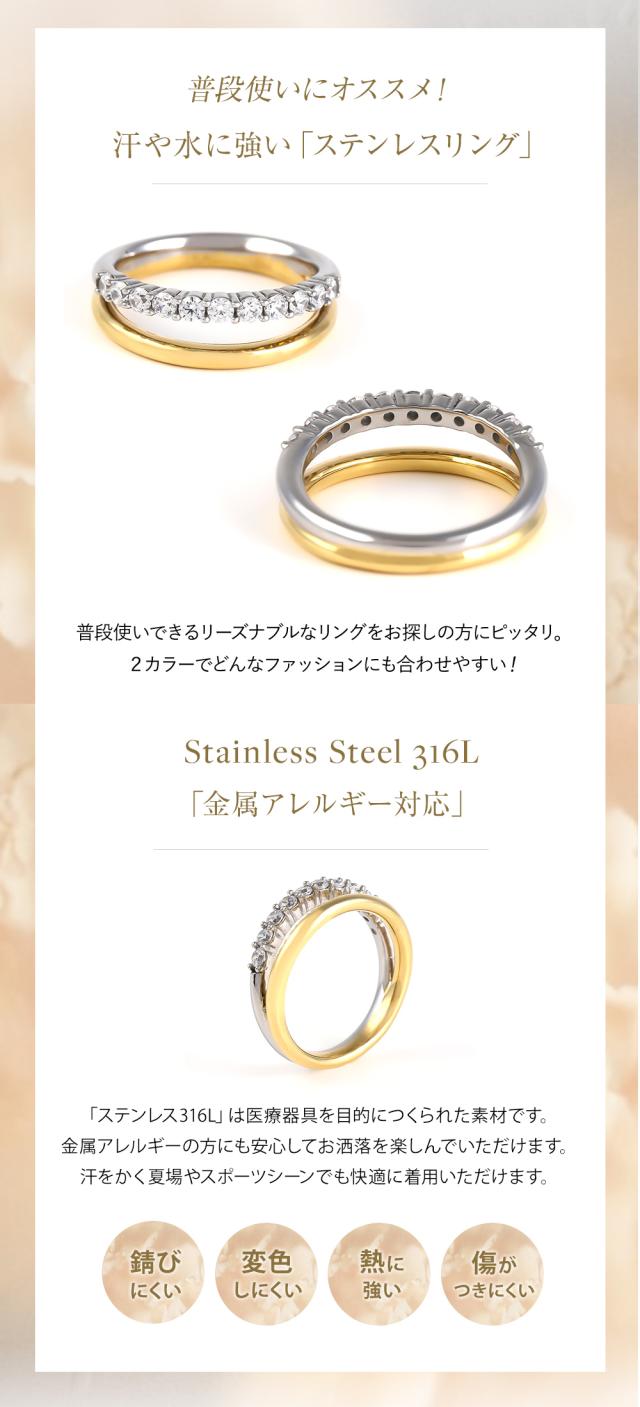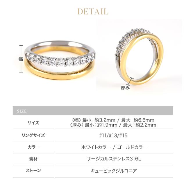 リング 指輪 レディース ステンレス ジルコニア ゴールド シルバー ホワイト ステンレスリング 金属アレルギー対応 重ね付け 2連リング 2連 ハーフエタニティ ステンレス316L メンズ 金属アレルギー ジルコニア cz ブランド ジュエリー アクセサリー クリスマス プレゼント