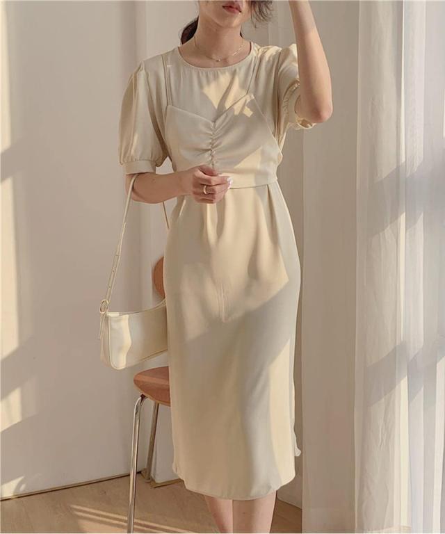 1枚着るだけでレイヤード風のスタイルが決まる半袖ロングワンピース