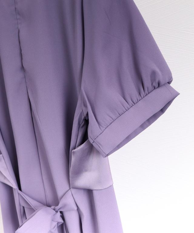 前はギャザー入りで女性らしい、後ろはバックリボンで大人かわいい