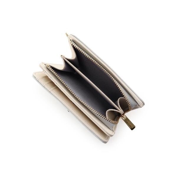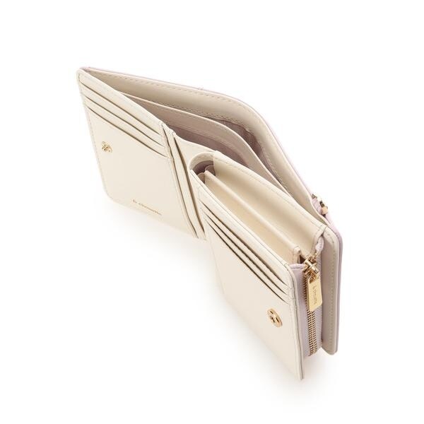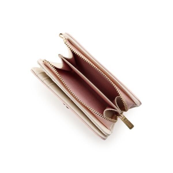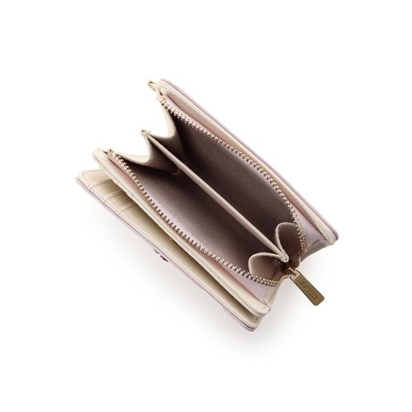 ◇& chouette(アンドシュエット)のビジュークローバー折財布ハートのビジューでデザインしたクローバーモチーフの折財布。シンプルながらワンポントのクローバーとハートのステッチデザインが可愛らしいアイテムです♡▼機能性・柔らかい素材で軽さ抜群の折財布です。・小銭入れはL字ファスナーで大きく開くので出し入れがしやすいのもポイント♪・お札入れ、小銭入れともに二つに分かれていて、アイテムによって仕分けることも◎・カード入れとフリーポケット合わせて9つと収納力抜群!・サイドのDカンにはイニシャルやお気に入りのモチーフのファスナーチャームをつけて気分を変えることもできます。・シュエットの折財布の中では小さめの作りで、小さめのバッグに入れても邪魔にならないサイズ感♪▼デザイン・4つの幸せや愛情を意味するといわれているモチーフの【ハート】のビジューでデザインした幸運モチーフの【クローバー】がポイント。・ハートと曲線のラインステッチデザインが柔らかく優しい印象を演出してくれるのも魅力です。▼収納力・カードポケット×6・フリーポケット×3