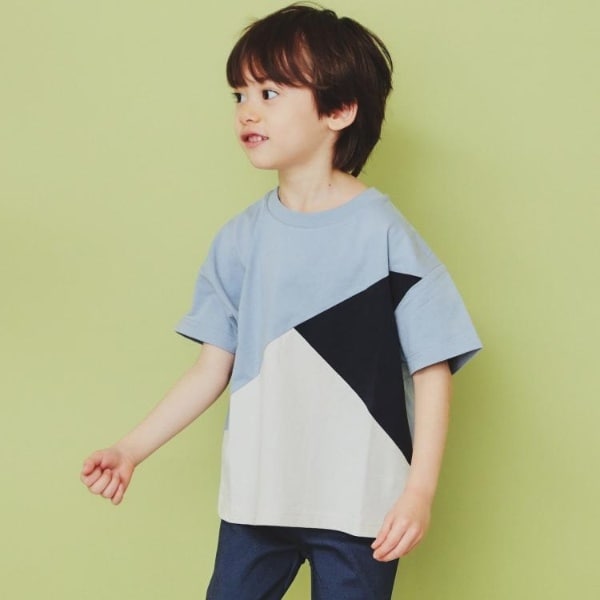 【110−160】斜め切替配色Tシャツ洗濯機OK