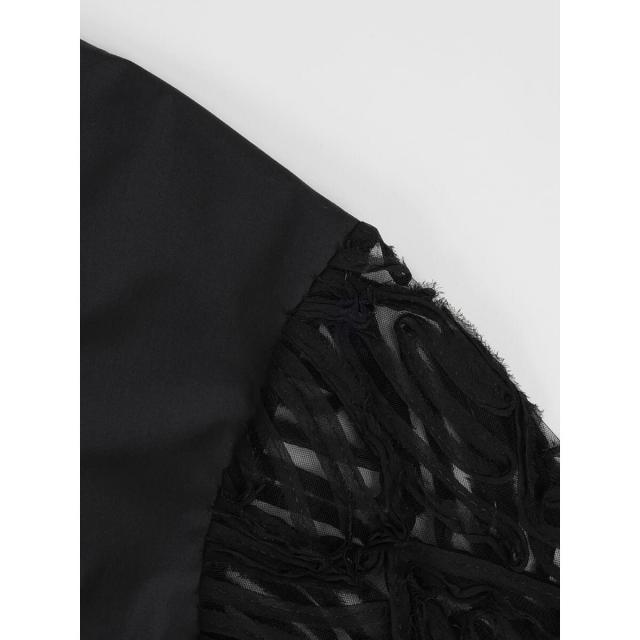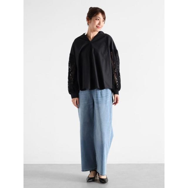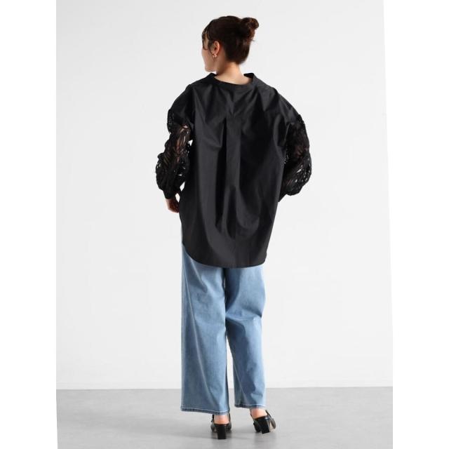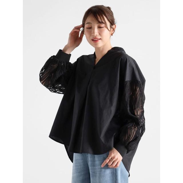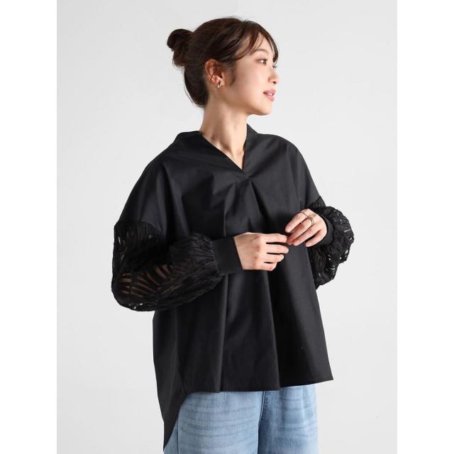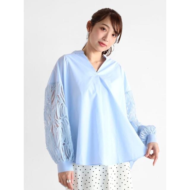 繊細なチュールに立体的なリボン刺繍を施した袖がポイントの華やかなブラウス。