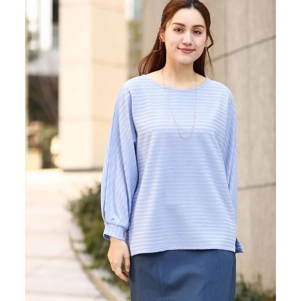 表面がポコポコとしたシャーリング生地をボーダー使いに使用しています。