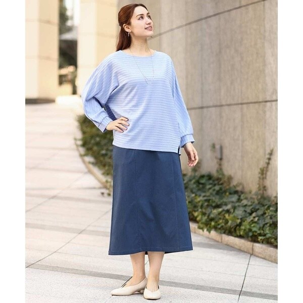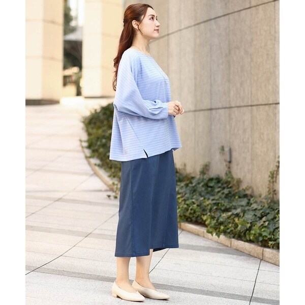 スカート、パンツどちらにも合わせやすい着丈。