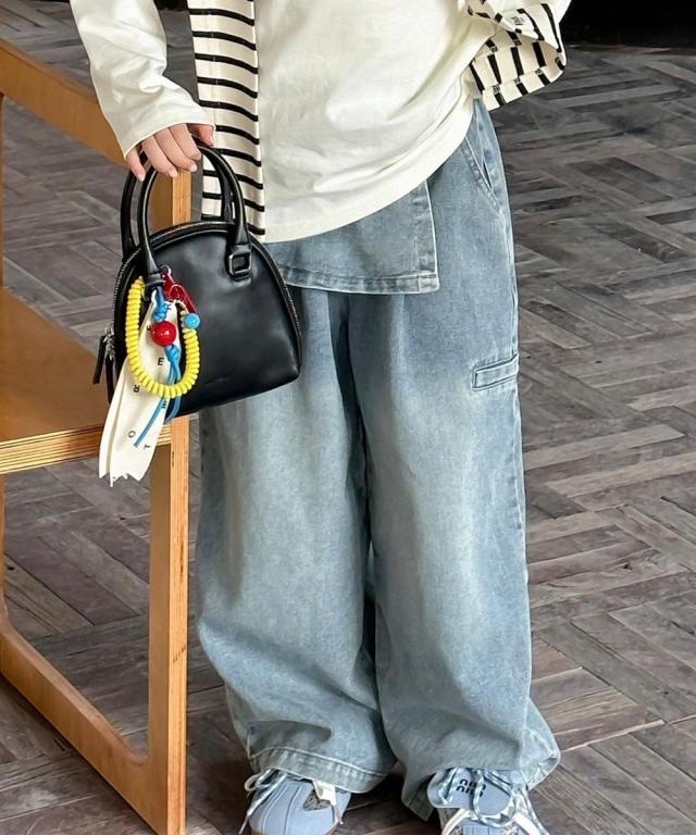 ユニークなアシンメトリーデザインが目を引くキッズデニムパンツ。片側に施されたラップ風ディテールが、シンプルなデニムに個性を加え、スタイリッシュでおしゃれ。ワイドなシルエットで動きやすさも抜群です。