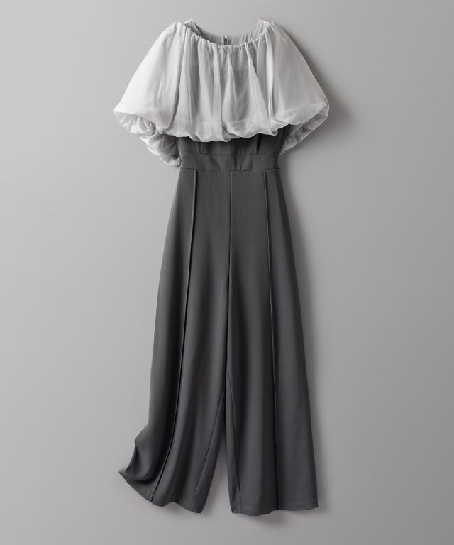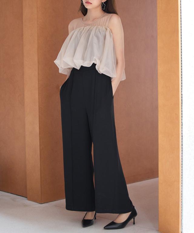 パーティーに活躍するオーガンジートップスとオールインワンの2点セット。